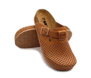 Model Gloria - drLeon to obuwie medyczne nowej generacji.Model Gloria gwarantuje czynne oddychanie skóry stopy. Otwory wentylacyjne zostały zaprojektowane w taki sposób, aby mogłby zapewnić optymalną wentylację. Dzięki zapięciu na pasku istnieje możliwość regulacji tęgości stopy. Zagłębienie pod piętą daje stopie większą stabilność i wspiera naturalne ułożenie stopy. Zamszowe pokrycie wkładki utrzymuje optymalny mikroklimat wokół stóp. Wygodne, anatomiczne obuwie medyczne z naturalnych surowców. Jednocześnie, dzięki anatomicznej budowie butów medycznych wspomagany jest naturalny ruch nogi przy każdym kroku. Zagłębienie pod piętę oraz podparcie łuku podłużnego połączone z materiałem z miękkiej skóry naturalnej w naszym obuwiu medycznym tak idealnie dopasowują się do anatomicznej budowy stopy, że tworzą wrażenie chodzenia po delikatnym przyjemnym puchu. Natomiast podparcie łuku poprzecznego oraz wsparcie pod palce, wraz z warstwą amortyzującą w podeszwie dopełniają efektu odciążania kręgosłupa i kolan, co jest niezwykle istotne w butach medycznych w pracy lekarza czy pielęgniarki. Wykonana w pełni z naturalnej skóry cholewka z perforacją umożliwia swobodną wymianę powietrza obuwie medycznego, co minimalizuje pocenie i pozwala „oddychać” stopie. Obuwie medyczne dr Leon to najwyższa jakość dla osób, które cenią sobie komfort, zdrowie oraz styl. Zalety butów medycznych dr Leon:
